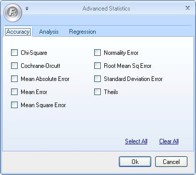 This section details the statistics that can be found under in the Accuracy measures area of the Statistics tab, as well as the Accuracy tab after clicking More Statistics.